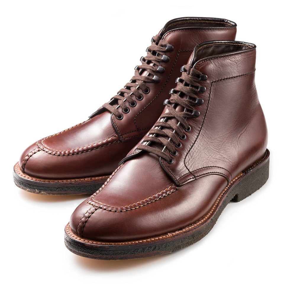 ノルウィージャンフロントと呼ばれるつま先に施すモカシンは、熟練職人による手縫いが特徴です。木型を入れた状態で縫うモカは、ライニングを縫わないようにしているため、履いたときにステッチが足に当たらないようになっています。熟練の職人でも1日に10足程度しか縫うことができない、マシーンステッチとは違った高級感が際立ちます。