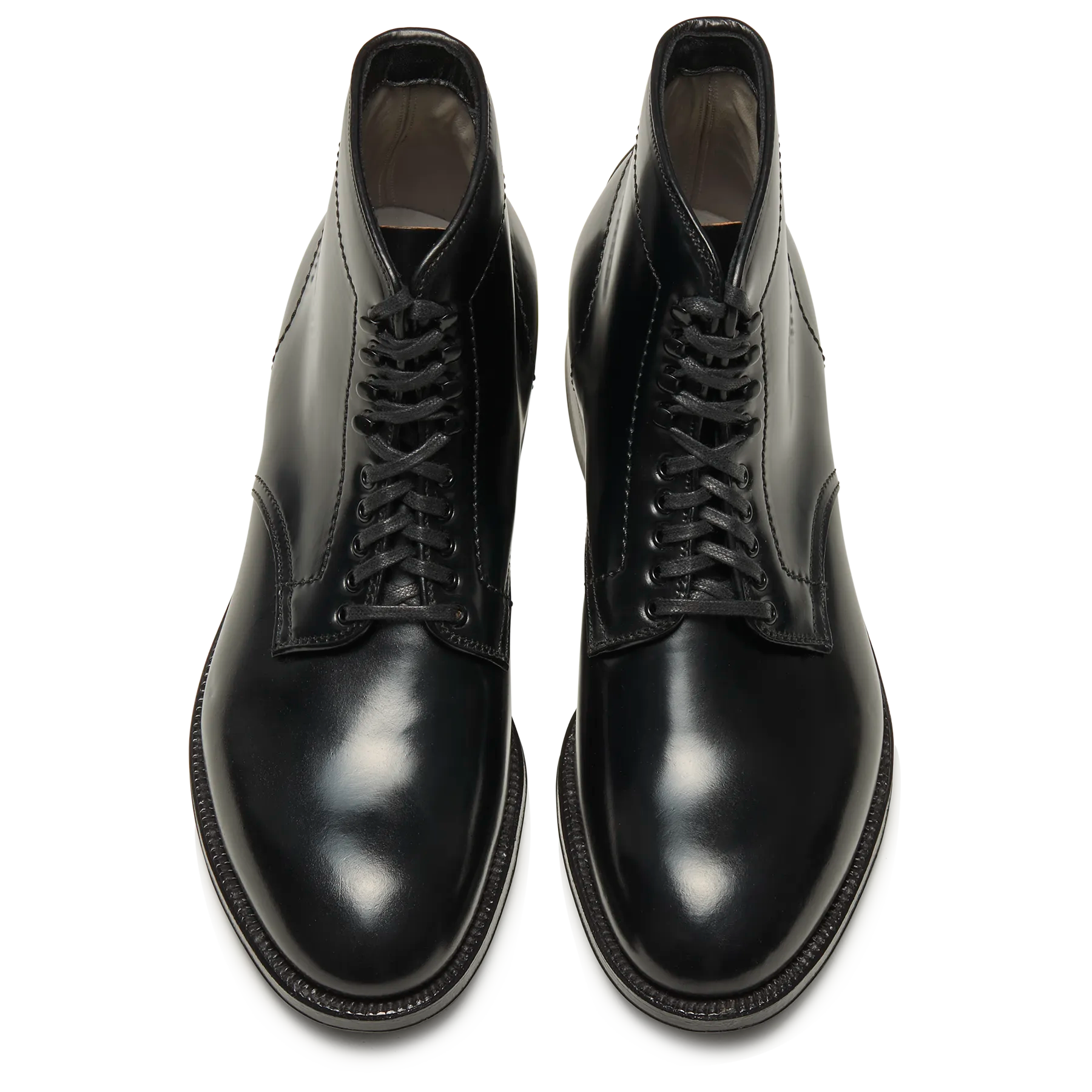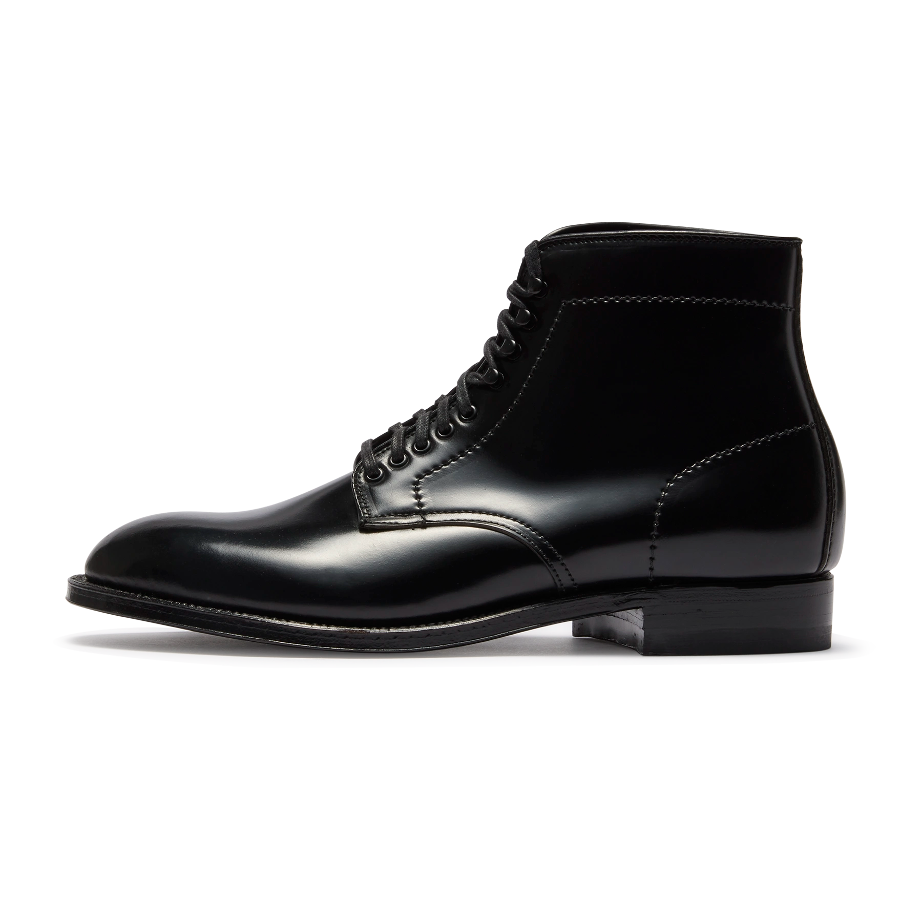 ラストの特長を靴全体で表現したレースアップブーツ。 モディファイドラスト特有の内外非対称のフォルムと、アーチシェイプによる美しい曲線がもっとも際立つモデルの一つで、ワーク調になりがちなレースアップブーツを見事に上品な表情に変化させたオリジナルブーツです。