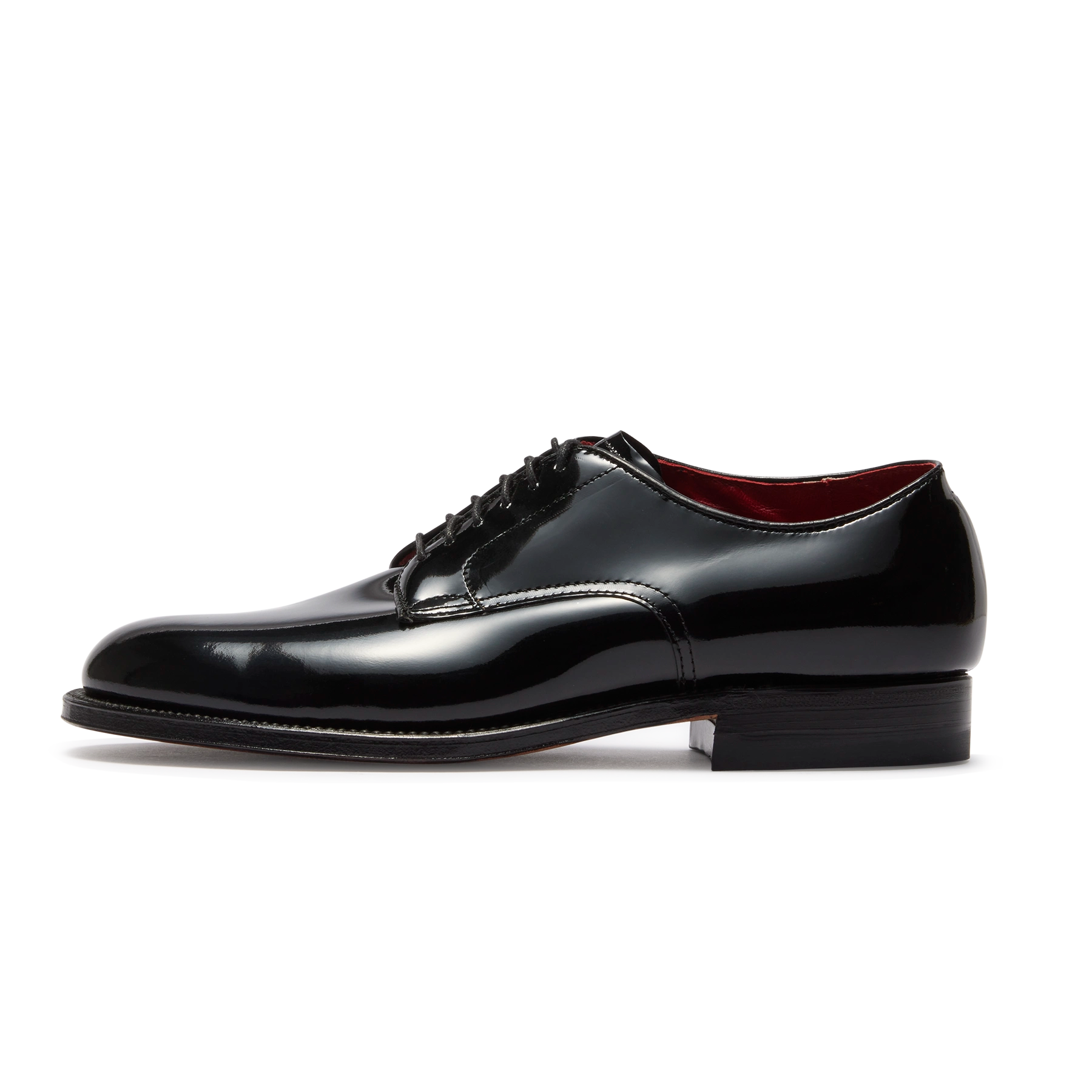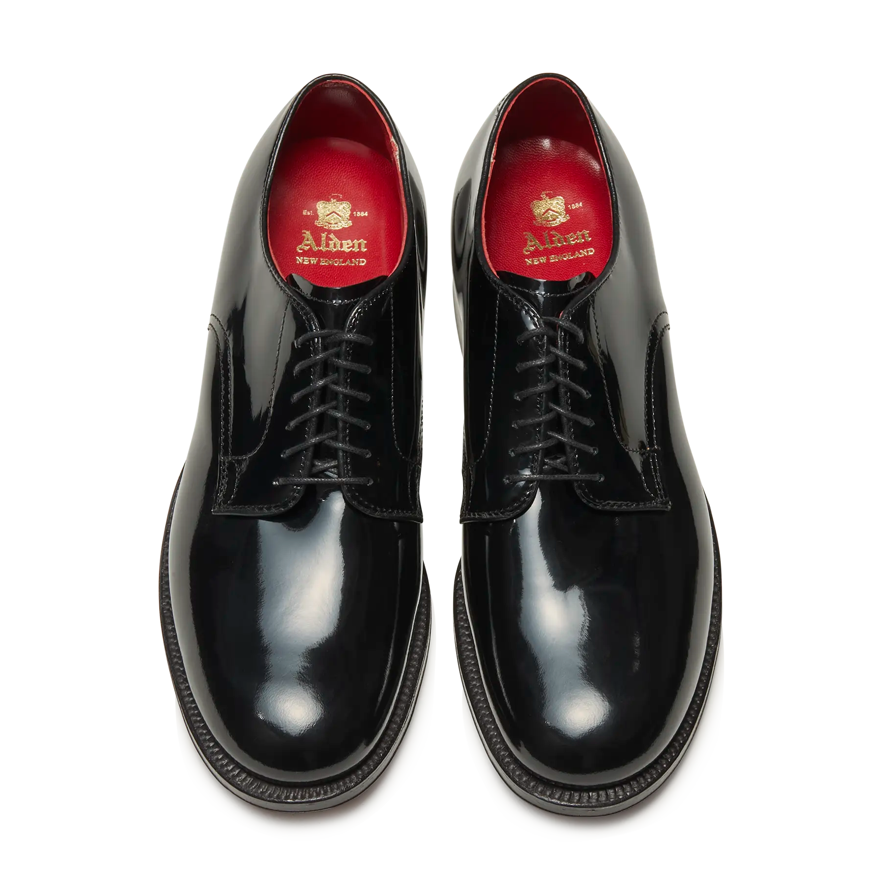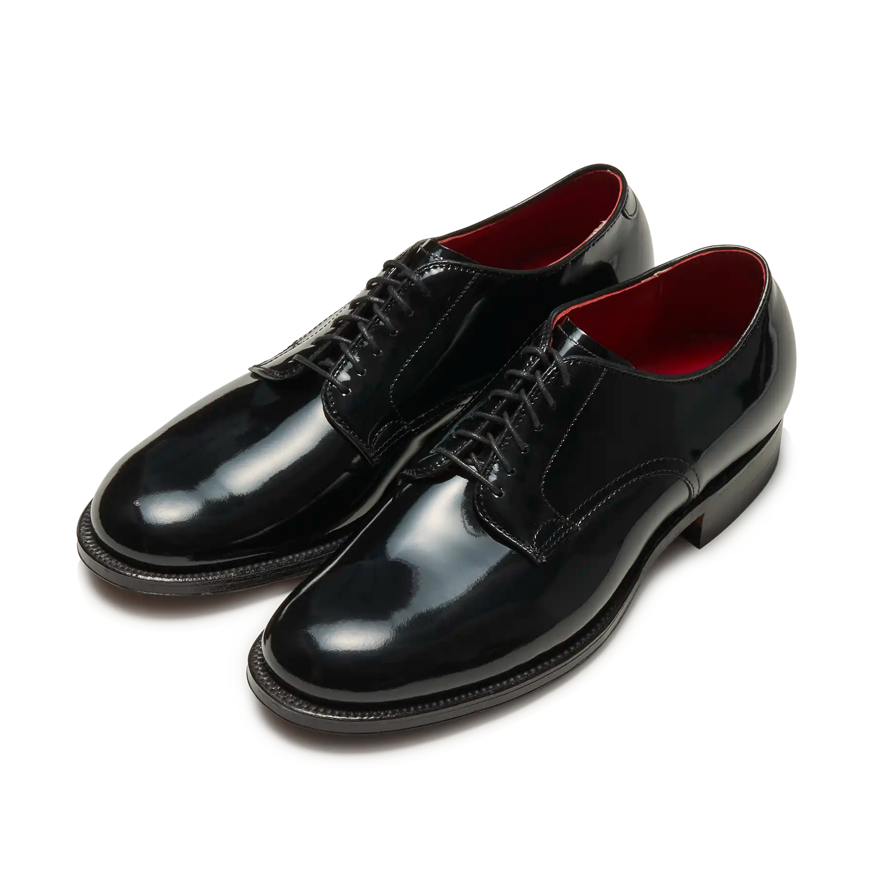 ミリタリープレーントウOX.をパテントレザーで仕立てたモデル。 軍へ支給していた靴に使われていたラスト「379X」と、古くはオペラ観劇や舞踏会・晩餐会等に履かれたオペラパンプスに使用するフォーマルの代表素材パテントレザーを組み合わせたAldenならではの1足。ライニングはパテントに引けを取らないインパクトある現ラインナップ唯一のレッド仕様。