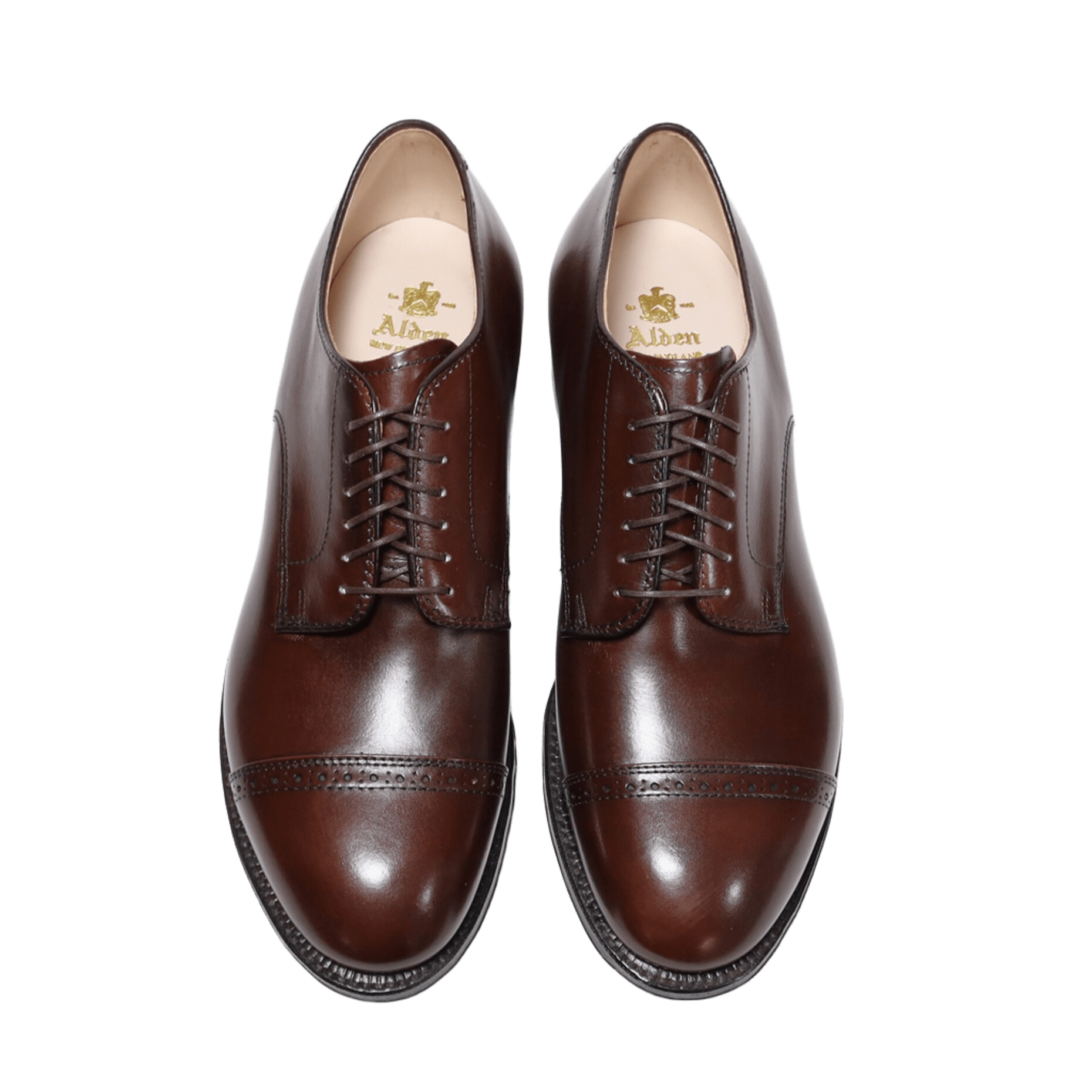 大きめのキャップにパーフォレーションと呼ばれる飾りを施し、歩行をサポートするトウスプリングが美しく反り返るバランスの良いモデルです。モディファイドラストにしか表現できない履き心地と独特のフォルムが、他とは一線を画す存在感を持ちます。