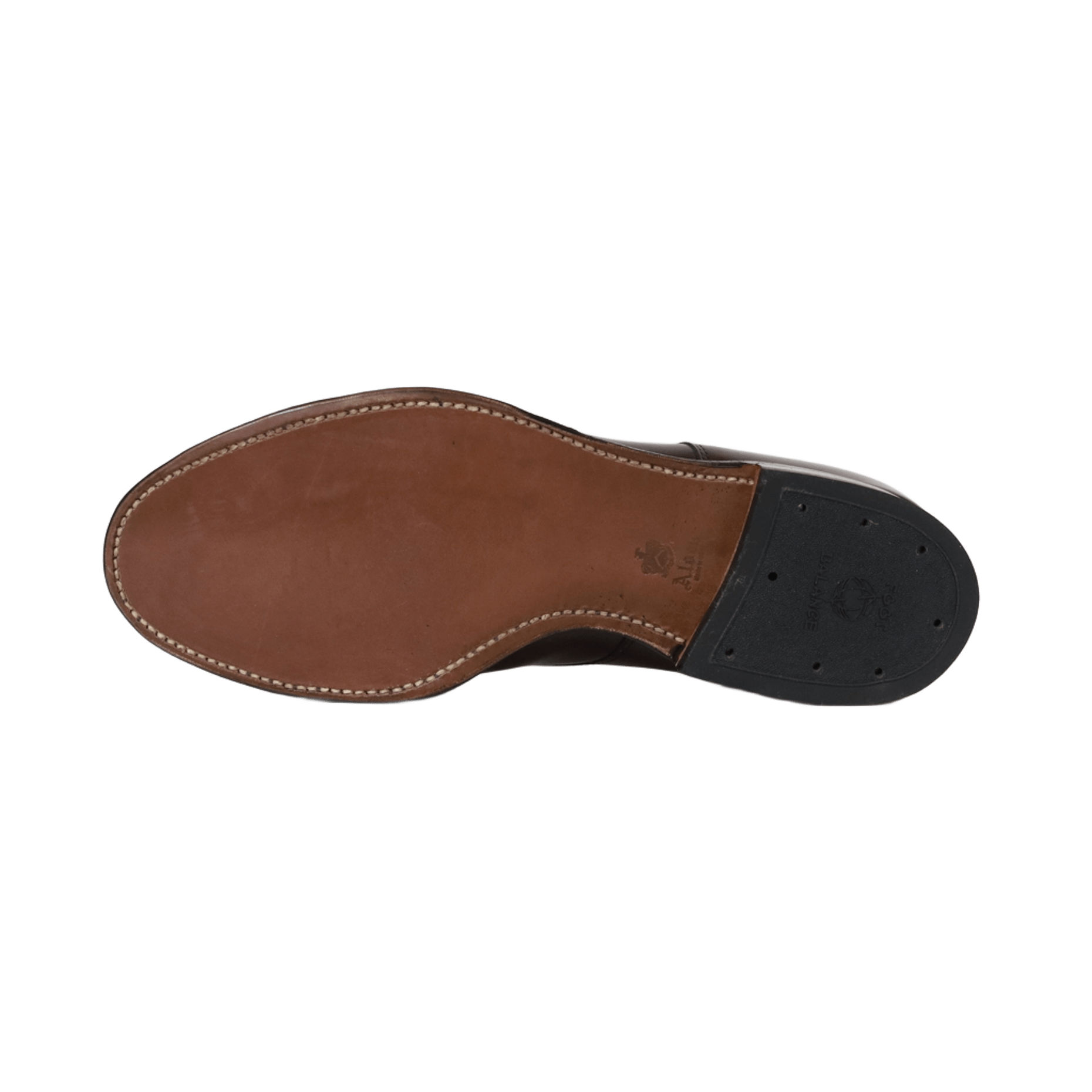 キメの細かい艶感が特徴のドレスカーフを使用した1足は、名称の通り紳士靴らしい色気を纏っています。ダークブラウンカラーは履きこみケアを繰り返すことで色の濃淡が表れ、所有者独自のエイジングを楽しめるのも醍醐味です。