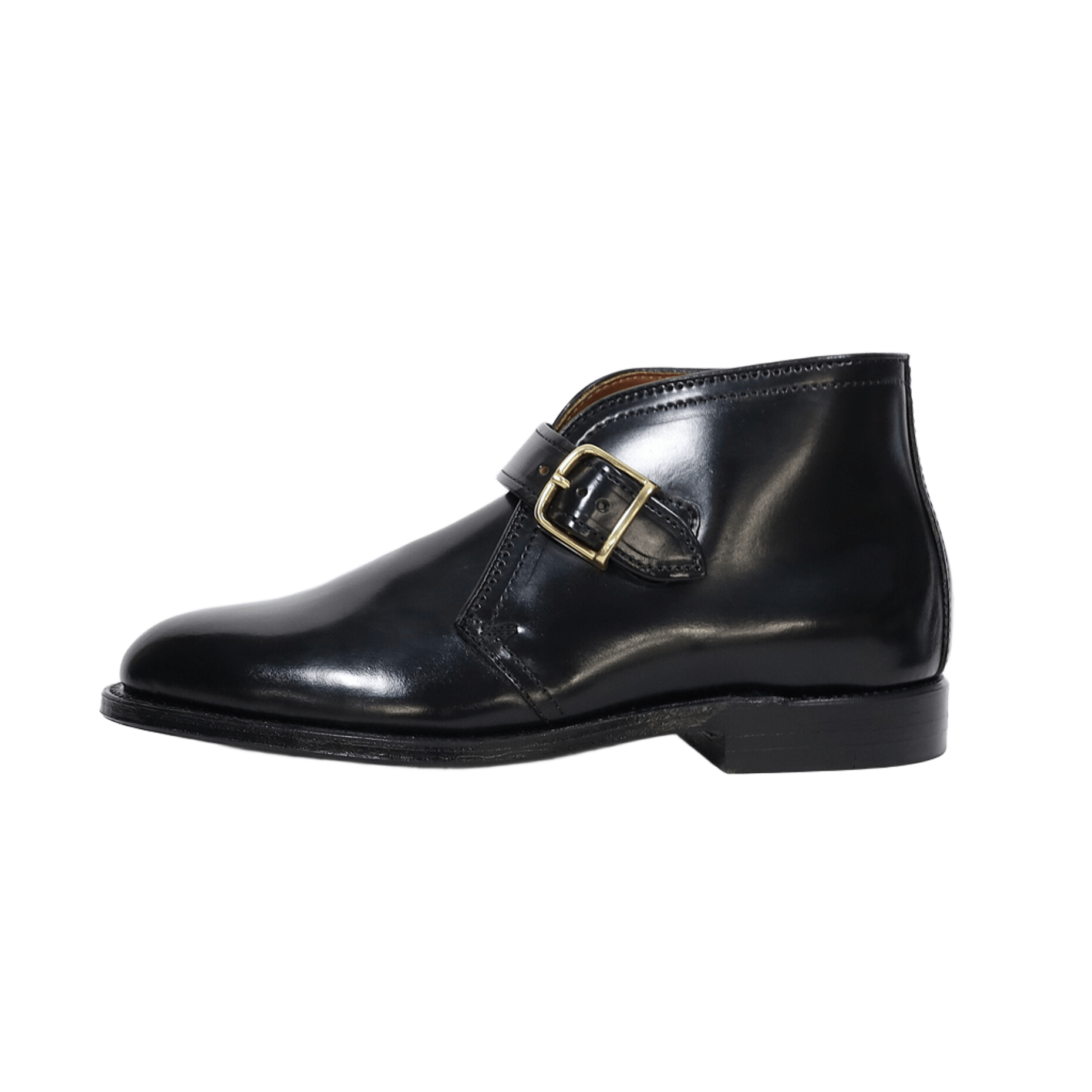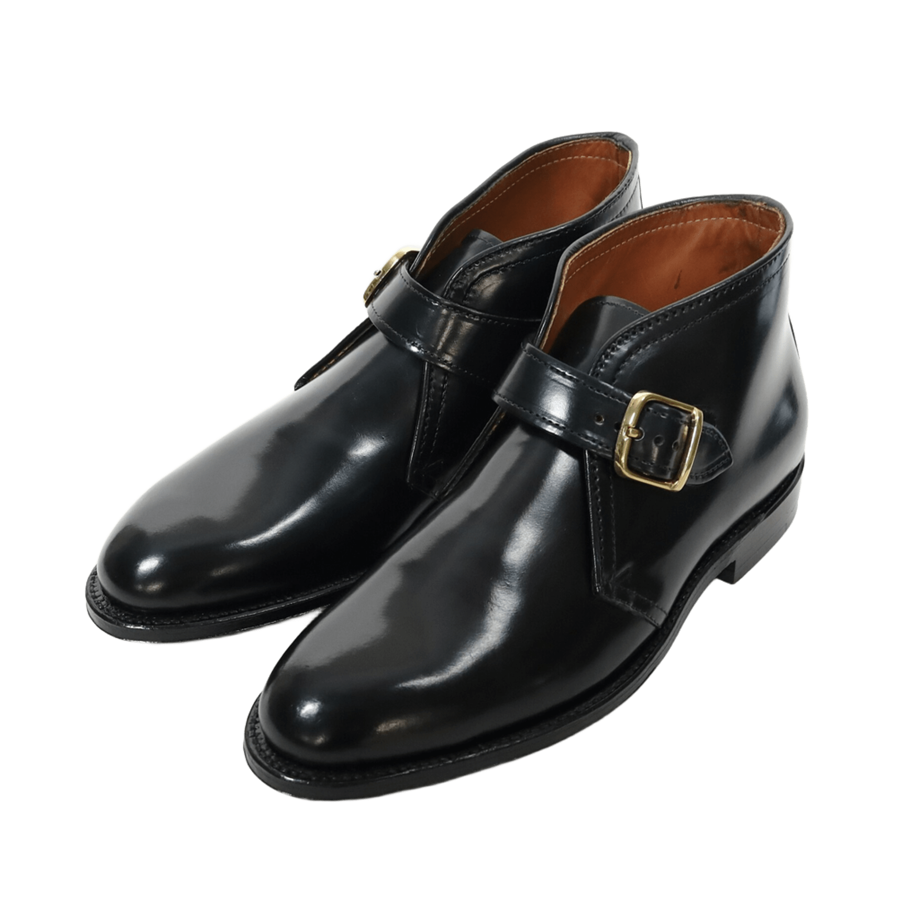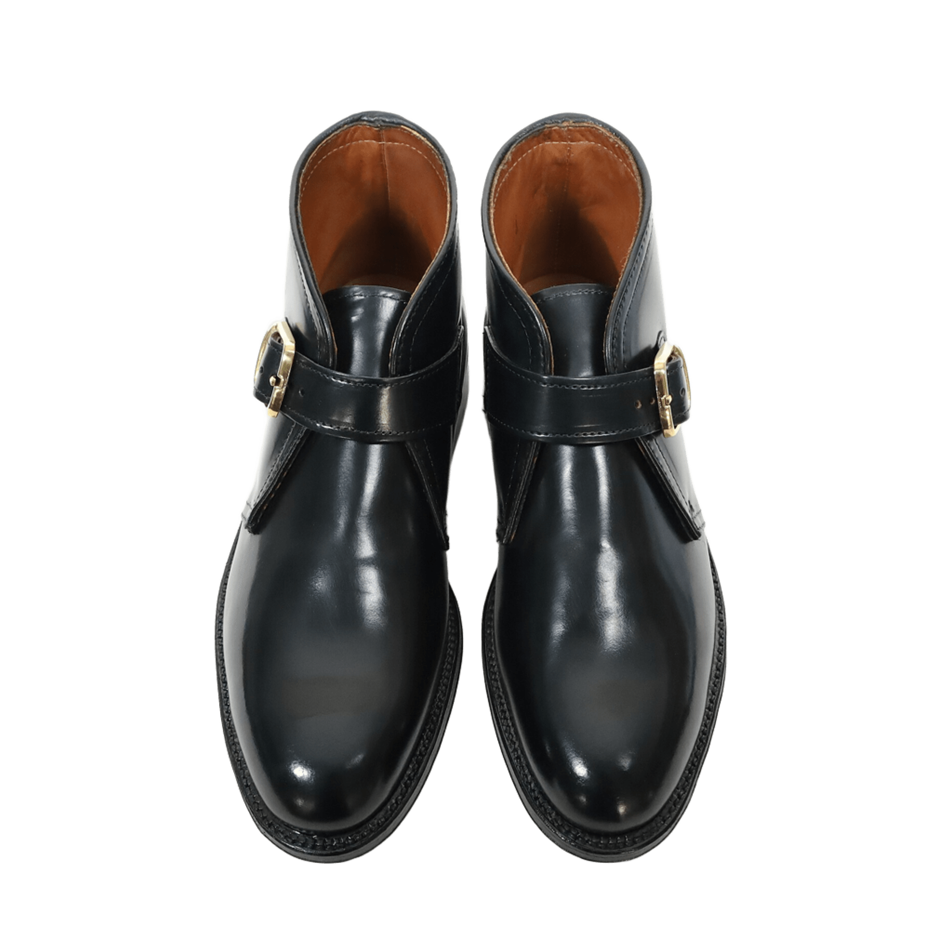 チャッカブーツと同じミドルカットのジョージブーツは、留め具にバックルを採用し、より着脱の手間を簡略化されたモデルです。