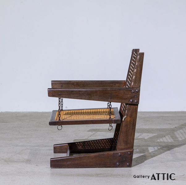 背面、座面はインドの職人によりバンブーラタン、ロープで新たに張り直してあります。ボディはオリジナルの雰囲気を損なわないようにメンテナンスをしております。