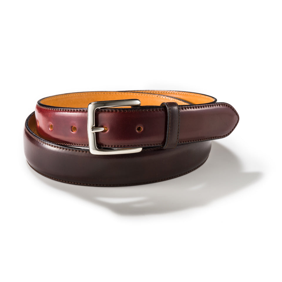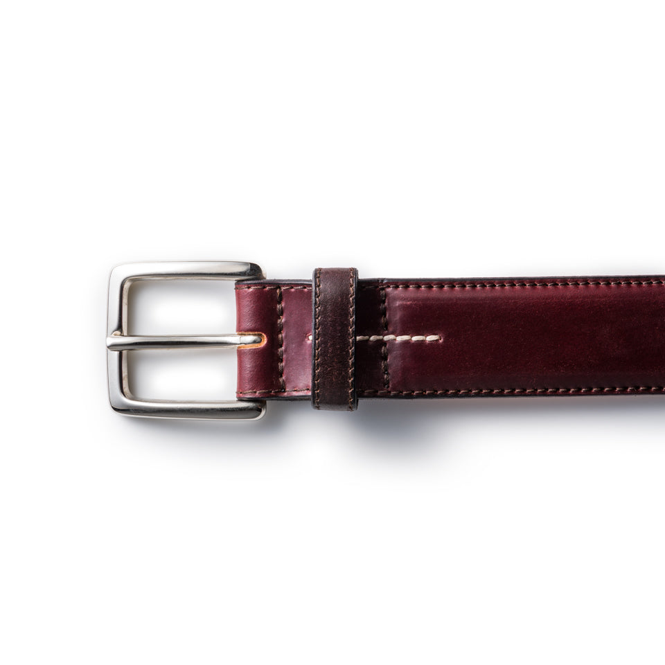 深く美しい光沢と驚くような馴染みが革好きを魅了するHorween社のコードバンと相性の良いドイツ産ベンズを組み合わせたドレスベルトです。控えめに作られたプレーンなデザインは、ビジネスやフォーマルに最適です。オリジナルポーチ付き。
