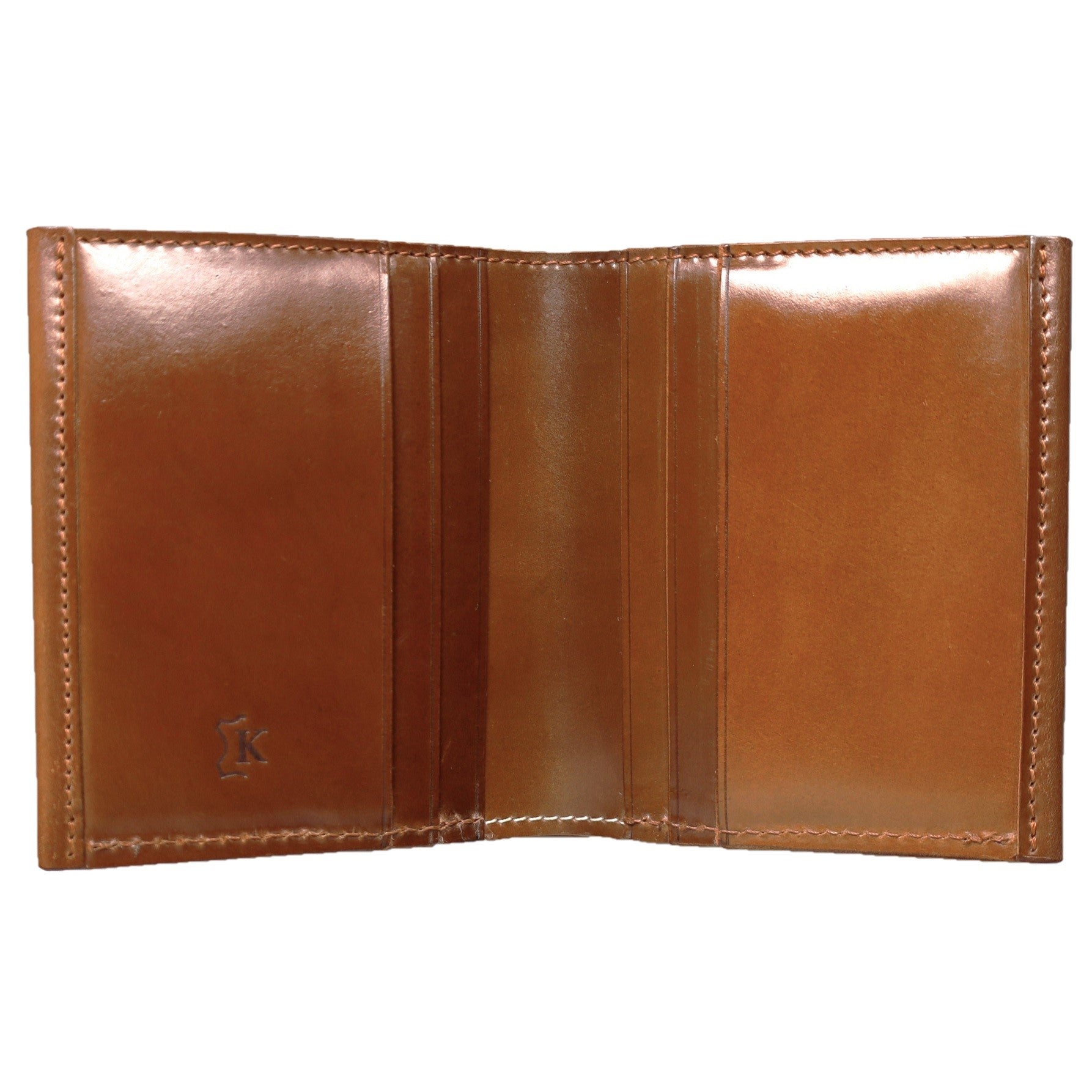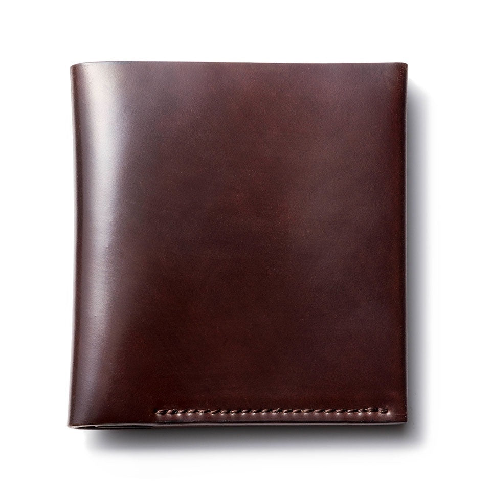 Horween社のコードバンを両面に使用した贅沢なミニウォレットです。最小限のステッチで作り上げており、箇所により「切り目」と「へり返し」2つのコバ処理を使い分け、ミニマムなサイズながら日本紙幣を収納できる優れものです。一部に薄く丈夫なカンガルー革を使用しており、全て『革』を使った拘りの逸品です。札入れ1 カード入れ6