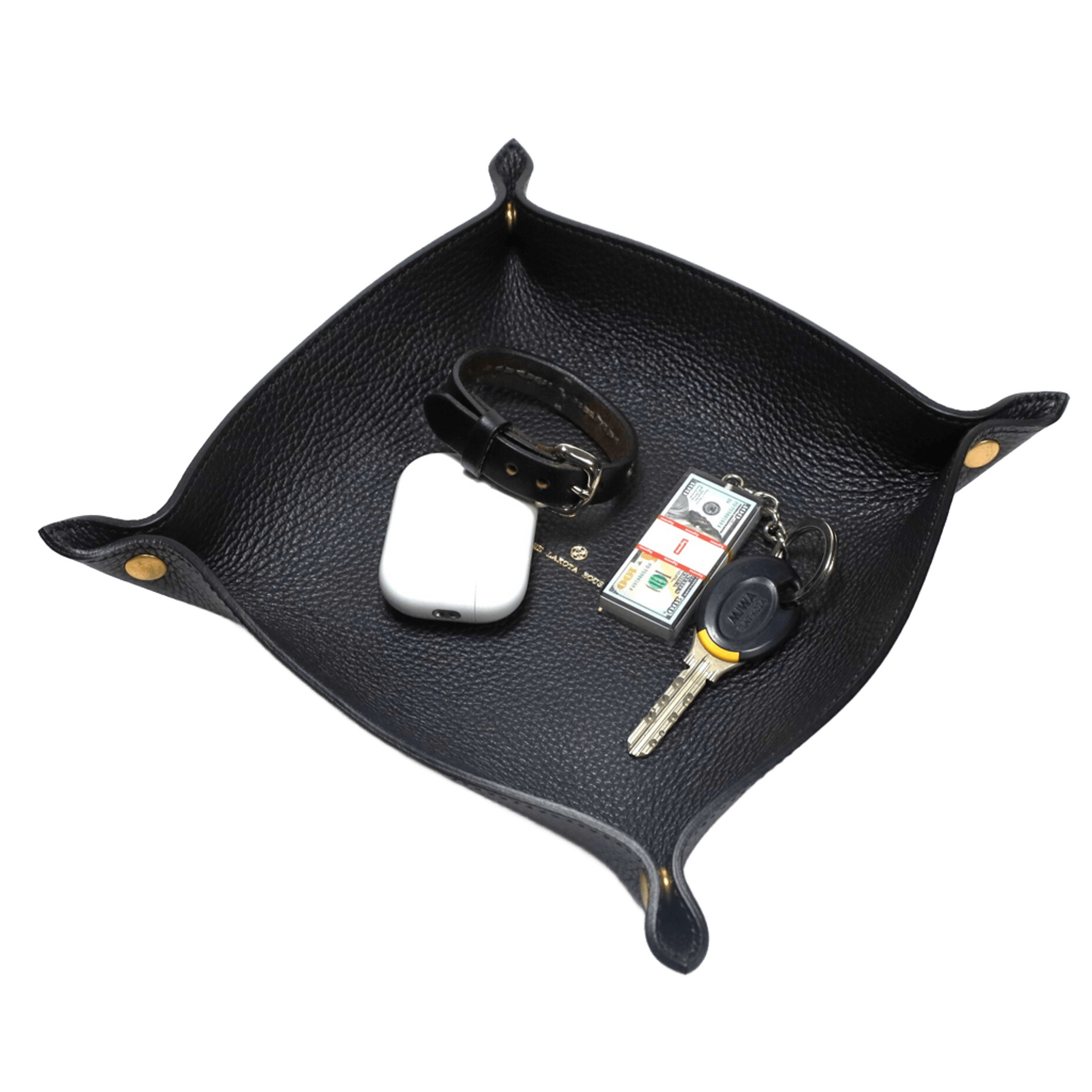 アクセサリーの休憩場所となるレザー製のトレイ。