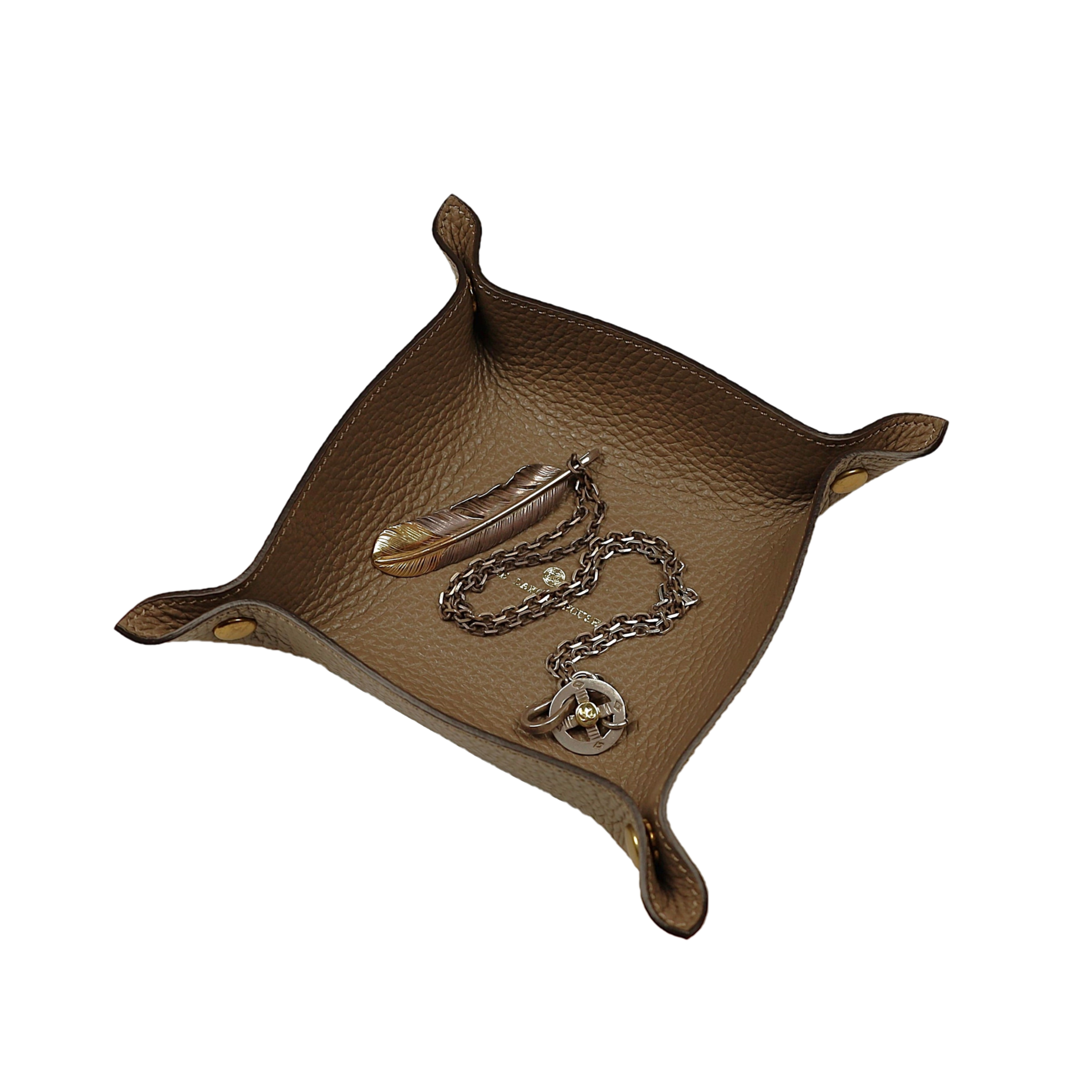 アクセサリーの休憩場所となるレザー製のトレイ。