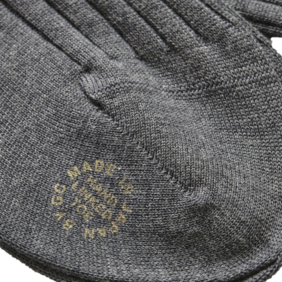 表糸と裏糸の素材選びやブレンド方法、編機や回転数に至るまで細部に拘りを詰め込んだ『ラコタハウス×グレンクライド』の『Alden』専用に開発されたオリジナルソックスです。つま先はハンドリンキングで仕上げており、気になるゴロつきはありません。超長綿であるスーピマ綿を特別なレシピによってゆっくりと編み、薄すぎず程よい厚みに仕上げた、耐久性と絶妙な履き心地が特徴です。