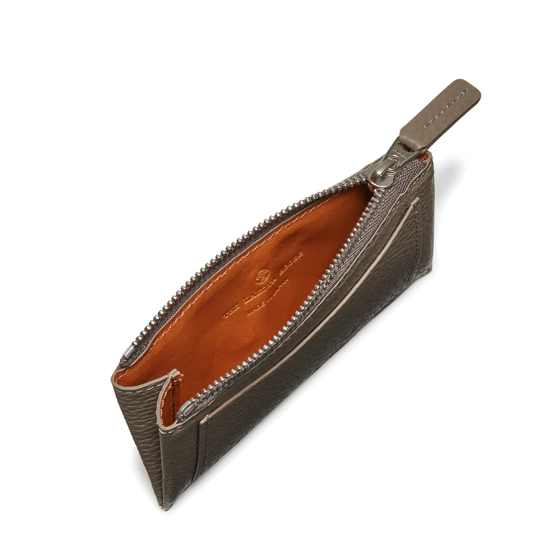 3サイズで展開されるフロントポケットジップケースのスモールサイズ。フロントにポケットをあしらい、両サイドにマチを設けたユニークなデザインは、上部を組み立て裏面からサイドを縫い合わせた後、表裏をひっくり返して底部分を縫う、ひと手間加えた本来は行われない拘りの作りです。表面はキズが目立ちにくく、しなやかで発色に優れたイタリアンレザー、大切な物を入れるケース内も重要なものと考え、ライニングには表面の革より上質な国産のキップレザーを使用しております。また、自然な色合いで仕上げることで、革本来のエイジングは勿論、柔らかな雰囲気になりユニセックスでご使用いただけます。スモールサイズのフロントポケットはカードサイズ、ケース内部にはカード類は勿論、小銭やメモリーカード、アクセサリーなど細かいものを収納するのにも便利です。