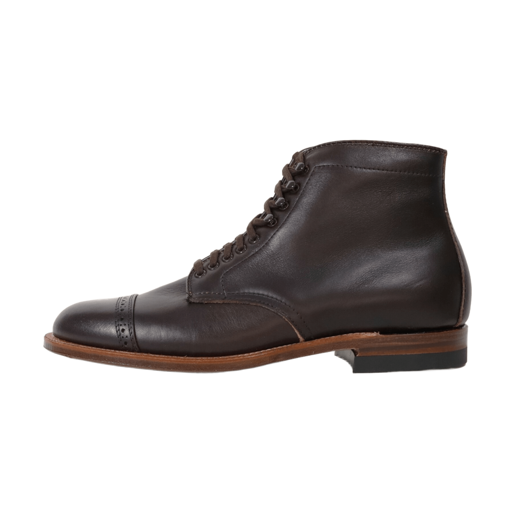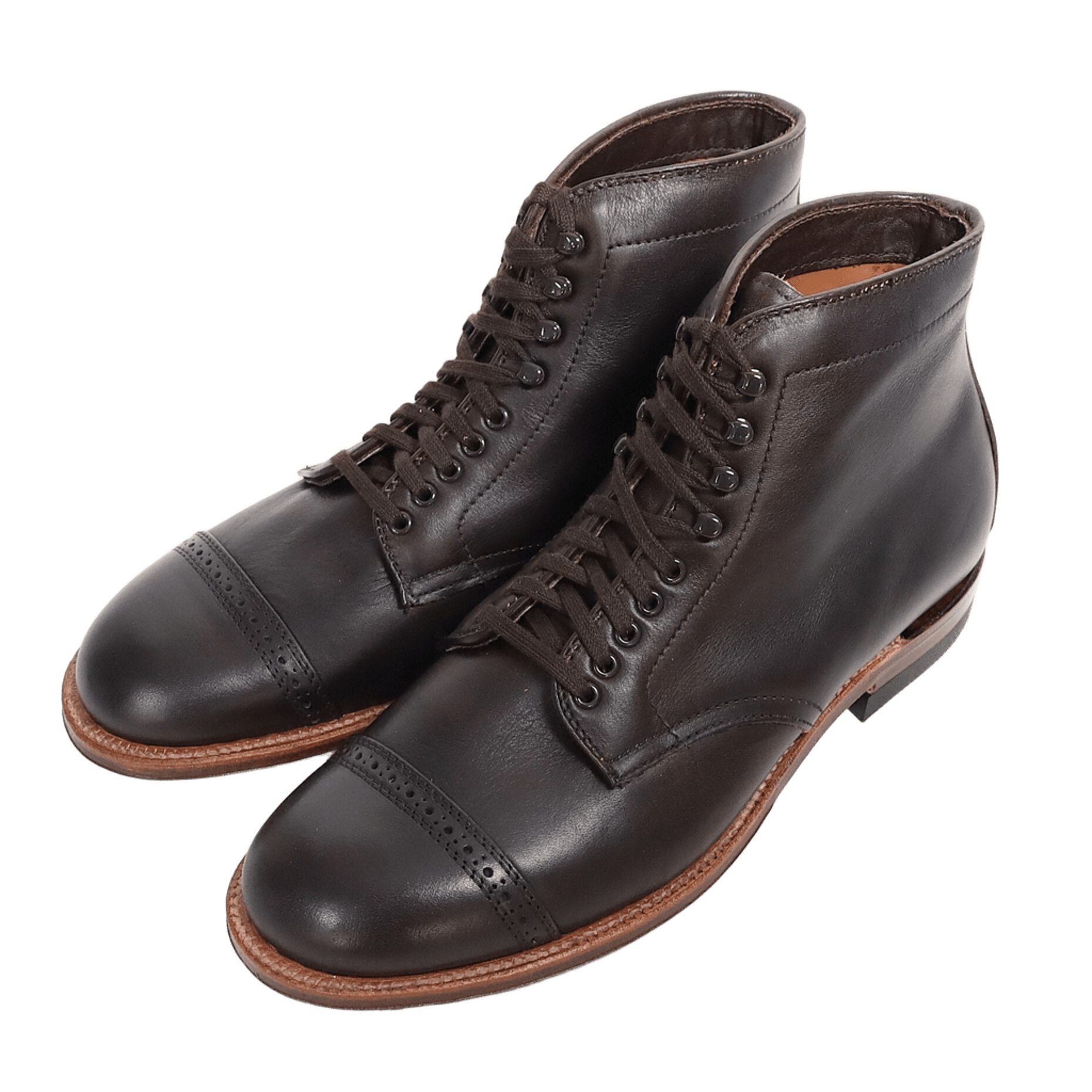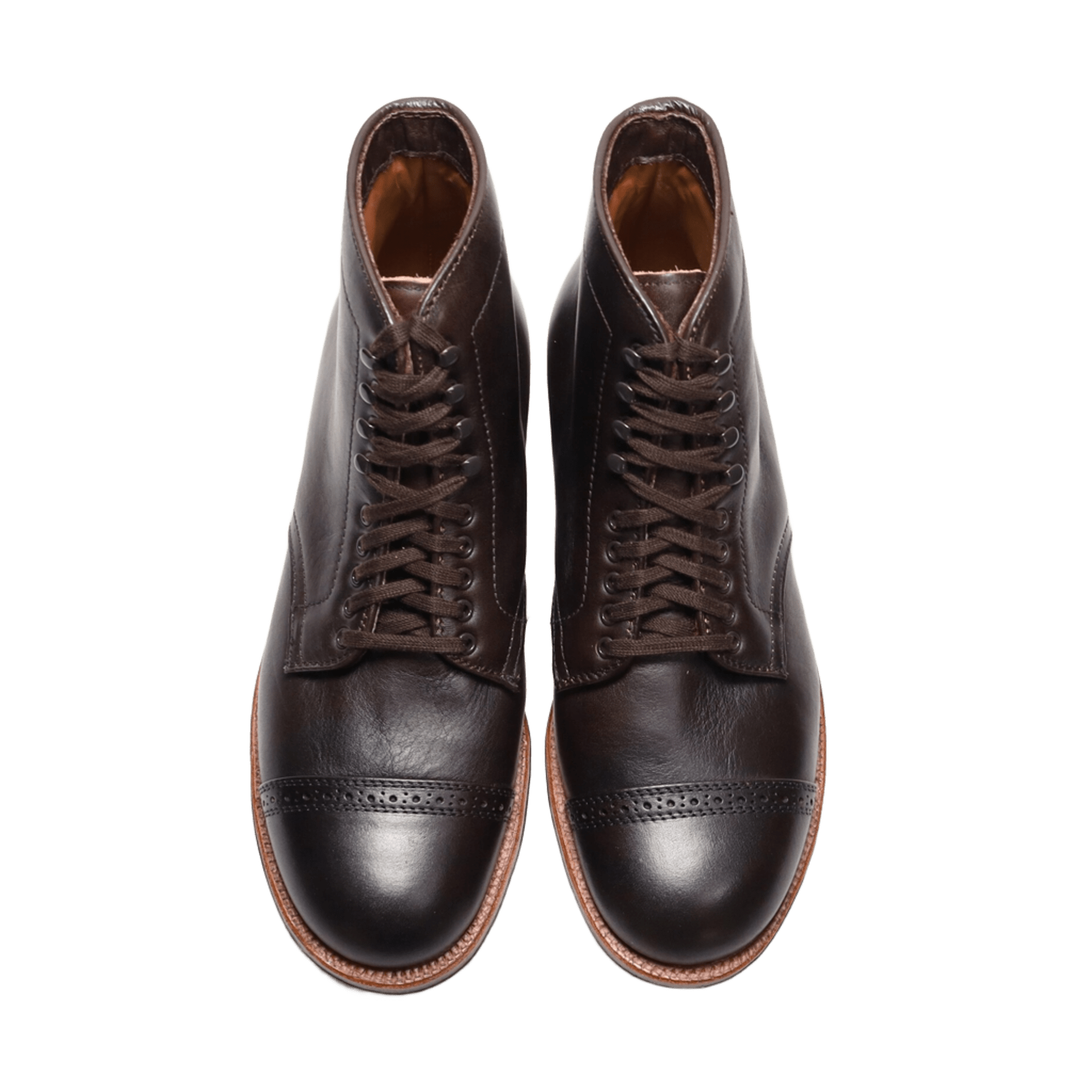 馴染みの良さと木目のようなワイルドな表情が特徴的な牛革は、Horween社が手掛ける “Arabica Lux(アラビカ・ルクス)” 。履き始めは深いコーヒーの様なダークブラウンから履き込むほどに赤茶系のベースカラーが表れる奥行きのある経年変化は、まさに革好きのための素材です。