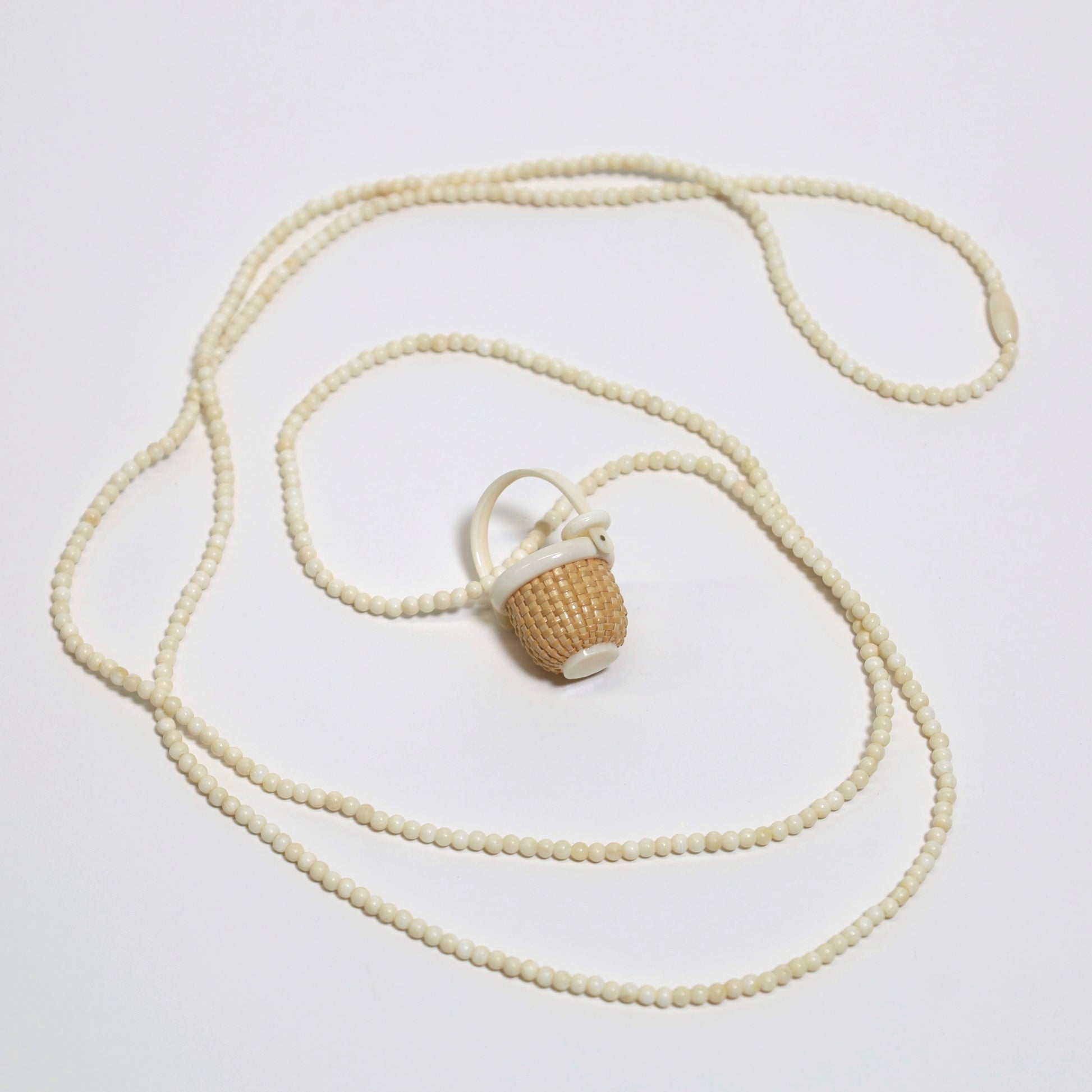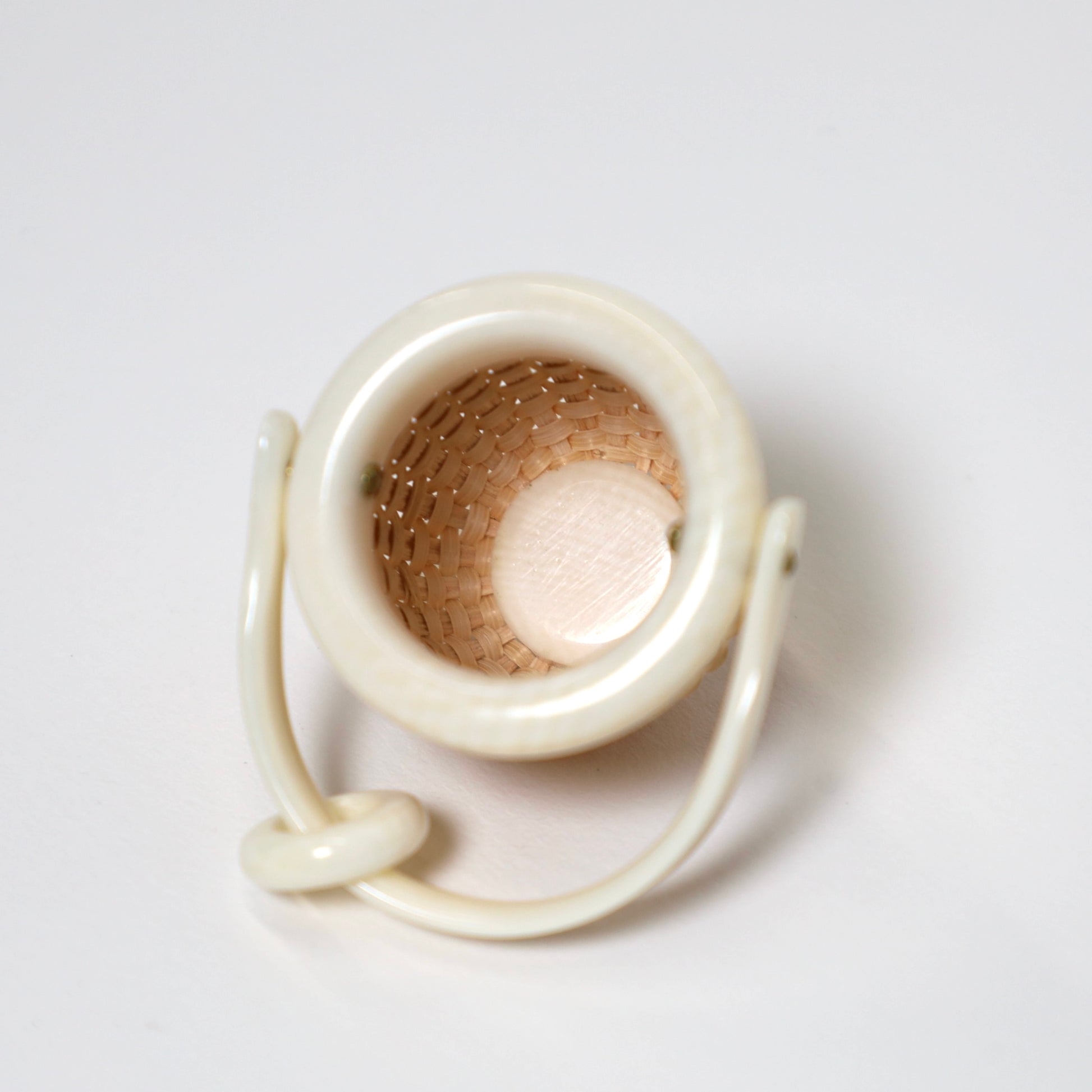 ペンダントトップとしてお使いいただける、3/4インチのラウンドミニバスケット。人差し指の先ほどの小さなサイズながら、ナンタケットバスケットの技術がぎゅっと詰まった、とても繊細な作品です。