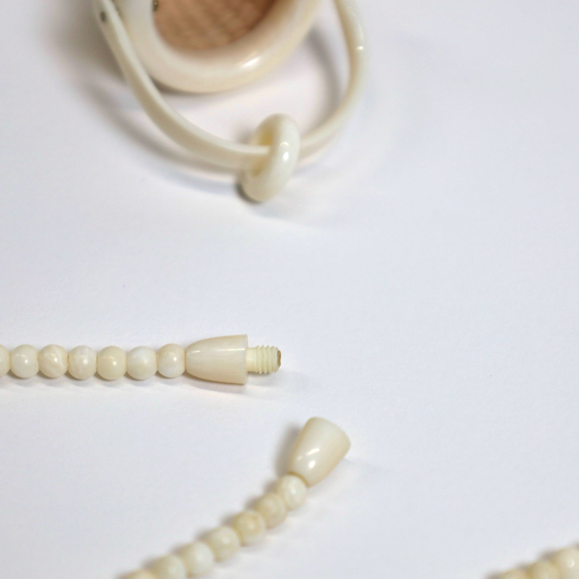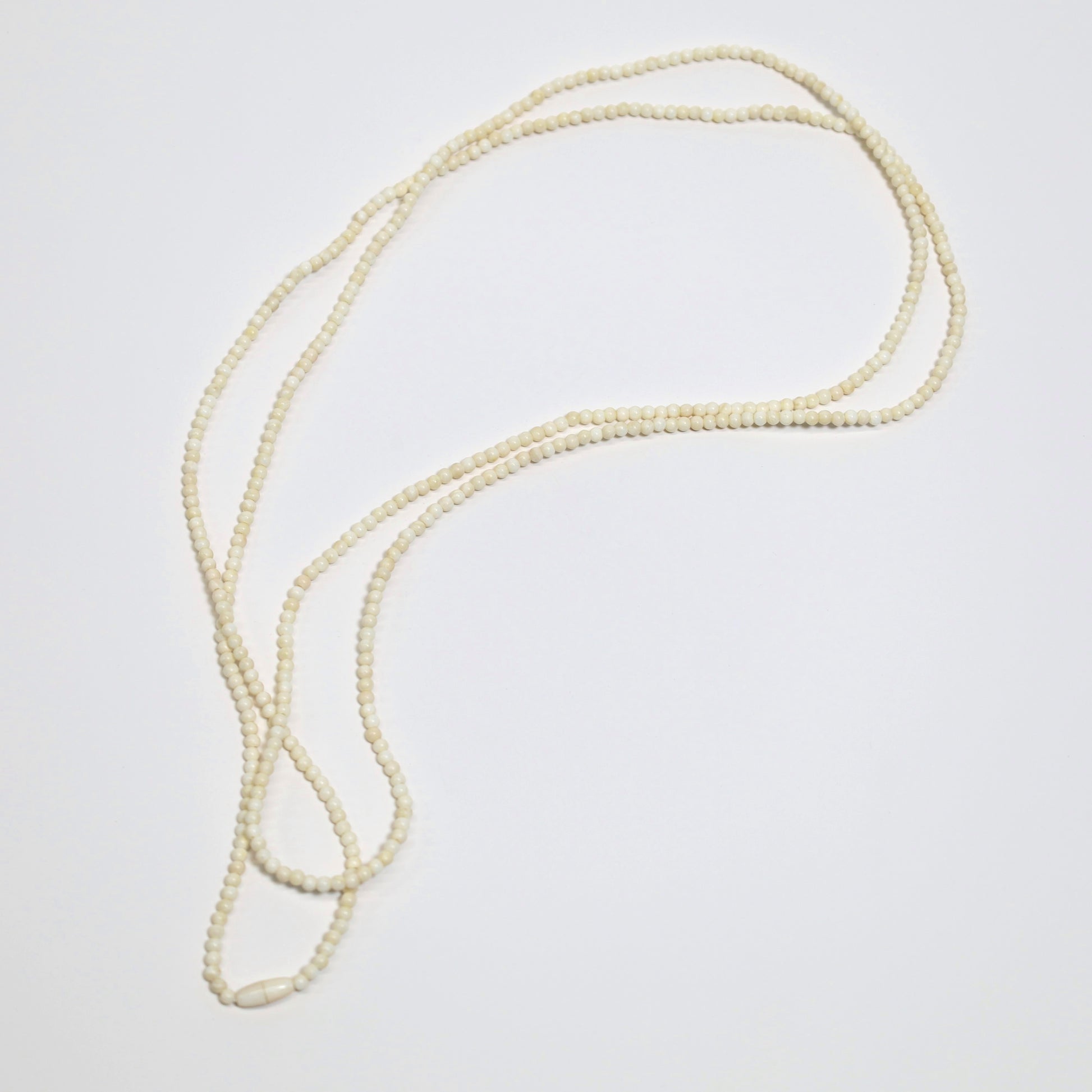 3mmの小さなアイボリー丸玉を連ねた、繊細なロングネックレスは温かみのあるやさしい質感が魅力です。